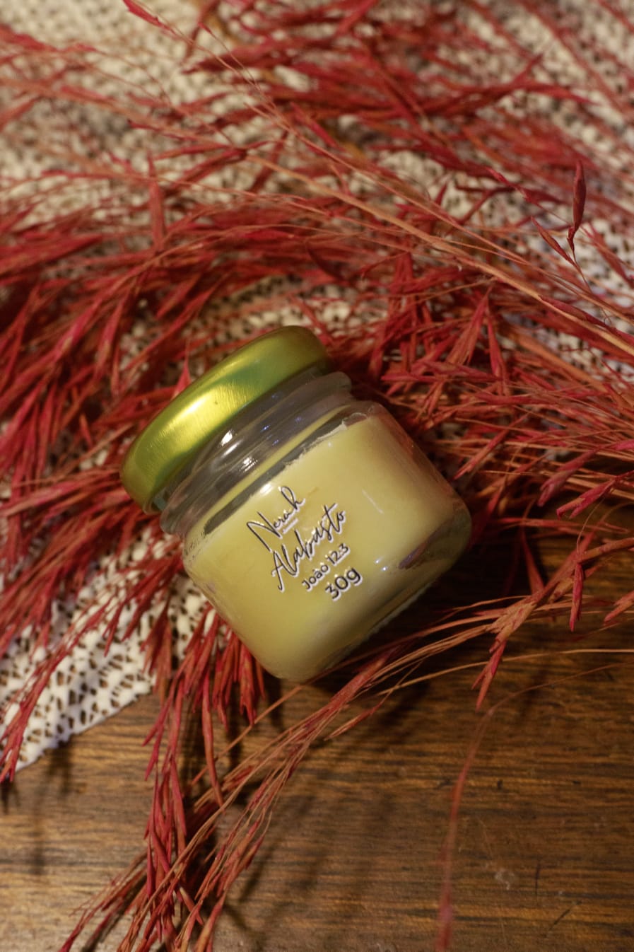 Vela de 30g com cera de côco, essência premium de Nardo e pavio de algodão.