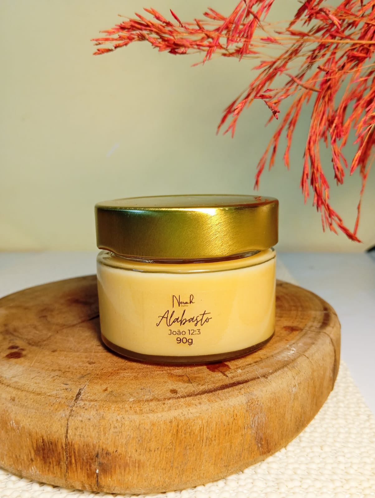 Vela de 90g com cera de côco, essência premium de Nardo e pavio de algodão.